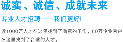 優質的服務源于對產品的執著,英才網聯一直走在專業人才招聘的服務前沿,以傳統網絡招聘與移動互聯相結合的方式重新定義“互聯網+招聘”的模式,以大數據信息化處理人與崗位的匹配關系。我們相信,真正的服務最終是人的服務,服務在人,成事在心!英才網聯愿與您攜手同心,共創輝煌。